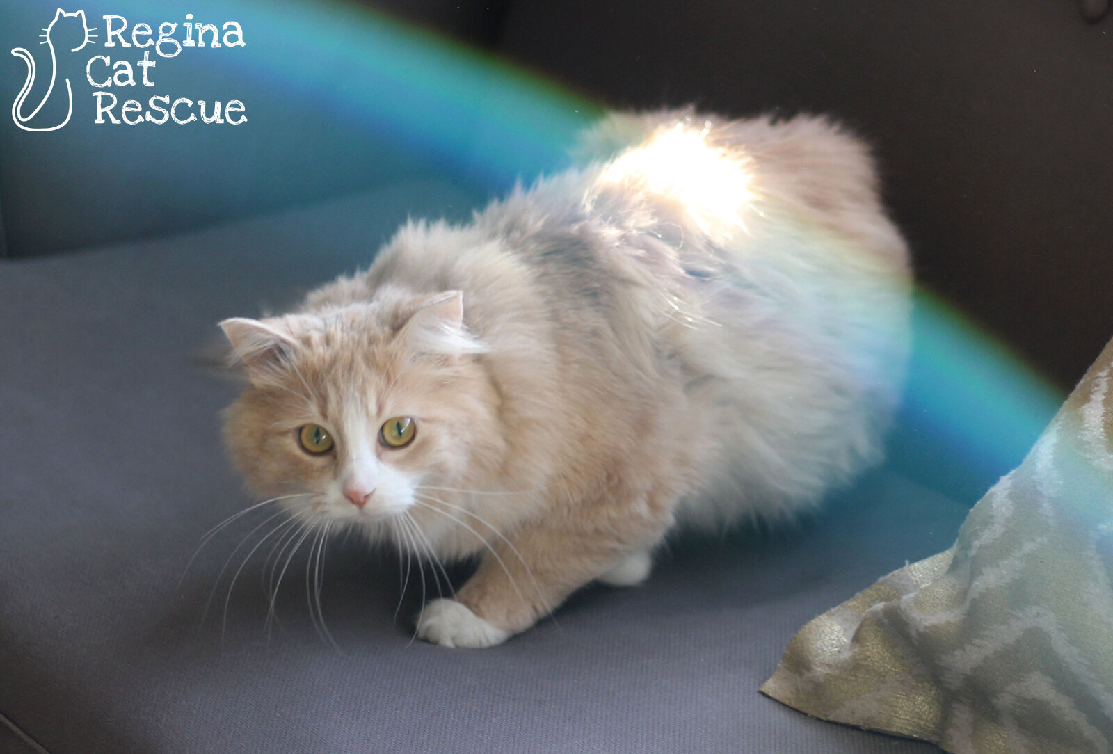 Meet Goldie, a gorgeous and unique cat who spent the winter stray in a local trailer park, and was recently rescued by Regina Cat Rescue when a kind couple notified us of her plight. After feeding and sheltering her for weeks, they wanted Goldie to have a chance at a loving home.