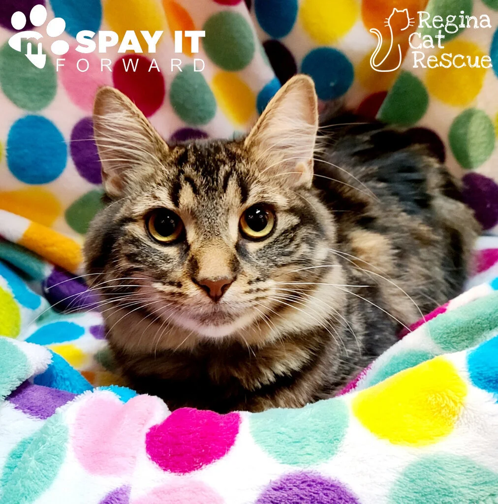 Pretty Sloane is a sweet young cat who found herself homeless last fall and in need of safety when a kind young woman took her in and gave her shelter. Unable to find an owner, the woman cared for Sloane as long as she could but was unable to keep her and contacted Regina Cat Rescue for help to get her spayed and into a loving home.
