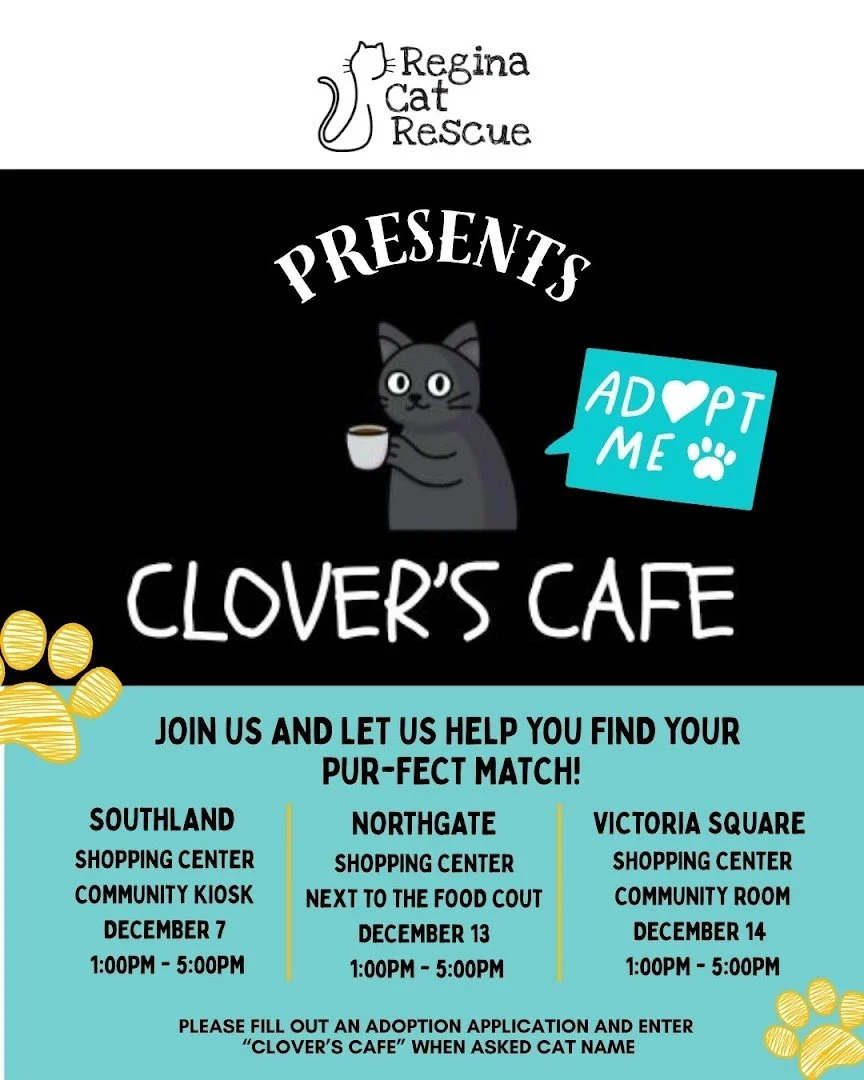 If you are interested in adopting at this event, we suggest you apply to be pre-approved (just click the button below to complete the application - when asked which cat you’d like to adopt, please enter “Clover’s Cafe”) and ensure you bring a carrier for safe transport should you match with the kitty of your dreams!
